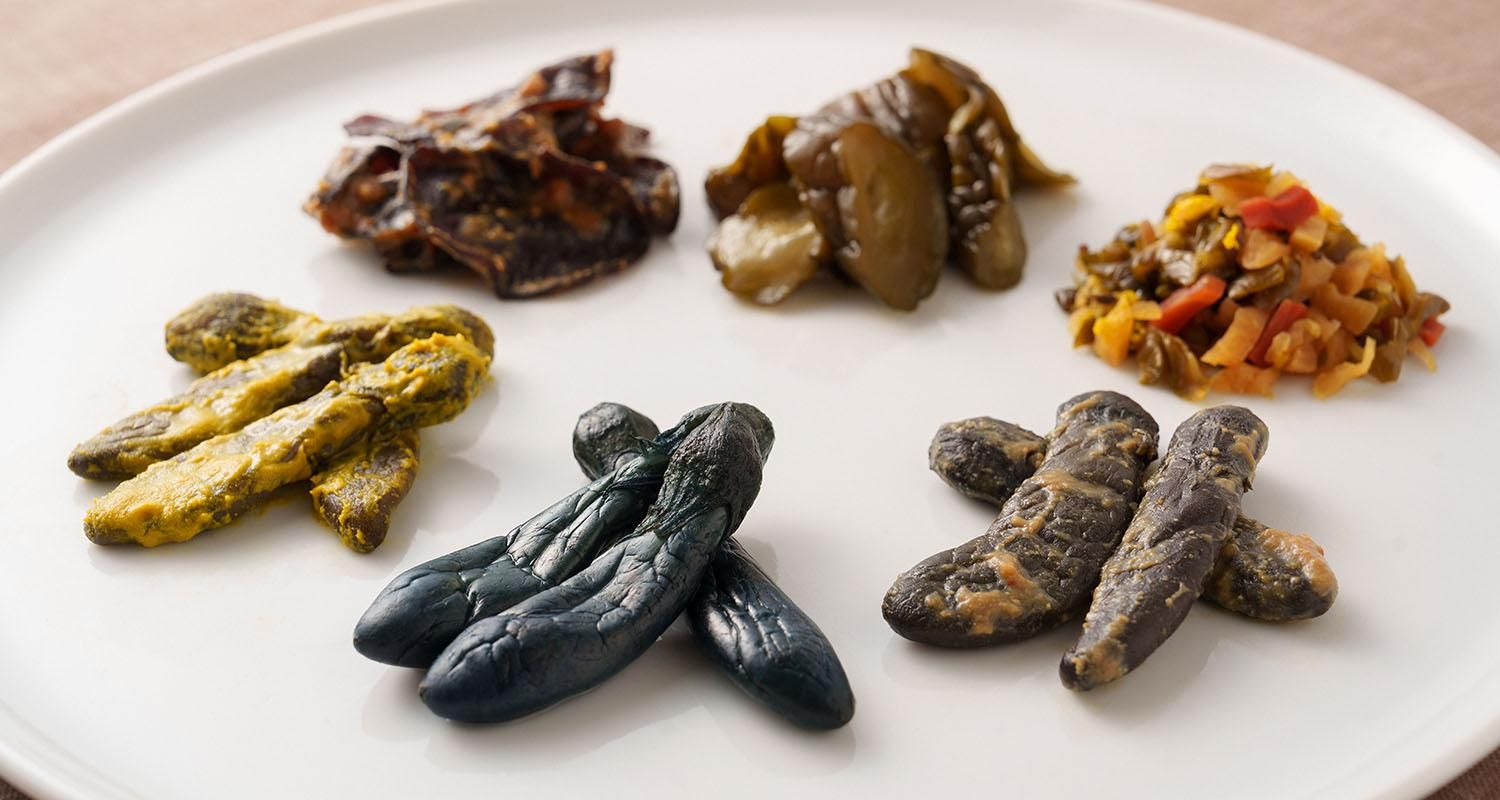 伝統野菜「仙台長なす」を醤油・からし・仙台味噌でそれぞれ味付けした三種の「仙台長なす漬」に、大きめのきくらげを青唐辛子の辛味とともに仙台味噌で仕上げた「きくらげの南蛮みそ漬」、七種の野菜を細かく刻み仙台味噌で漬け込んだ「七夕漬」、胡瓜を丸ごと淡口醤油で味付けした「仙台っ子(胡瓜の一本漬)」との詰合せ。